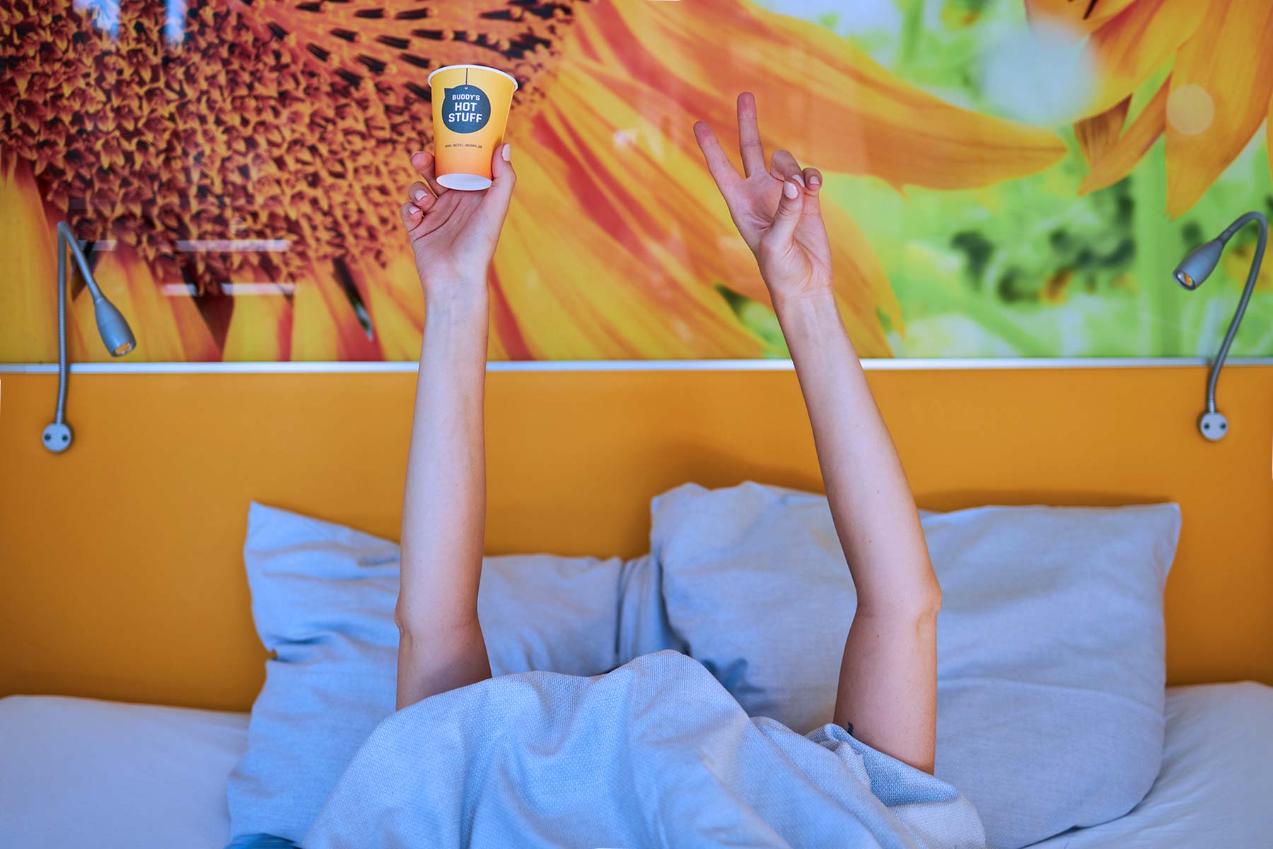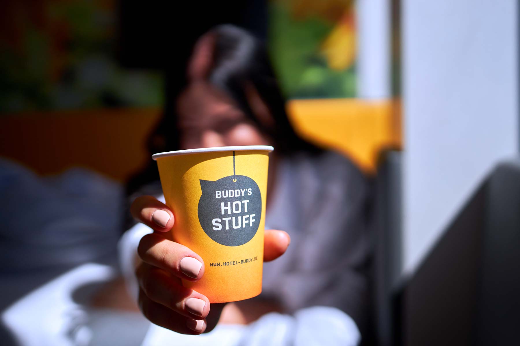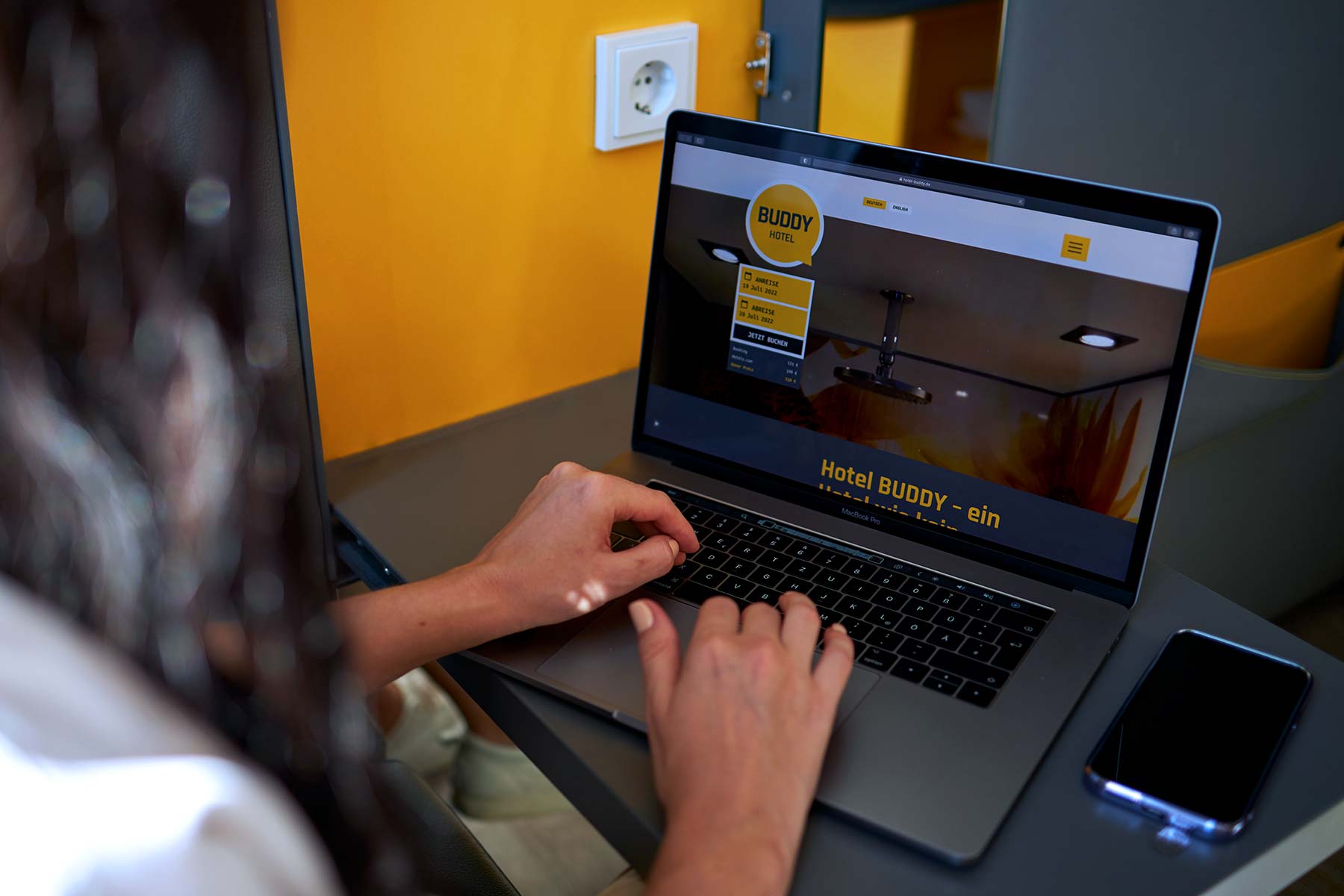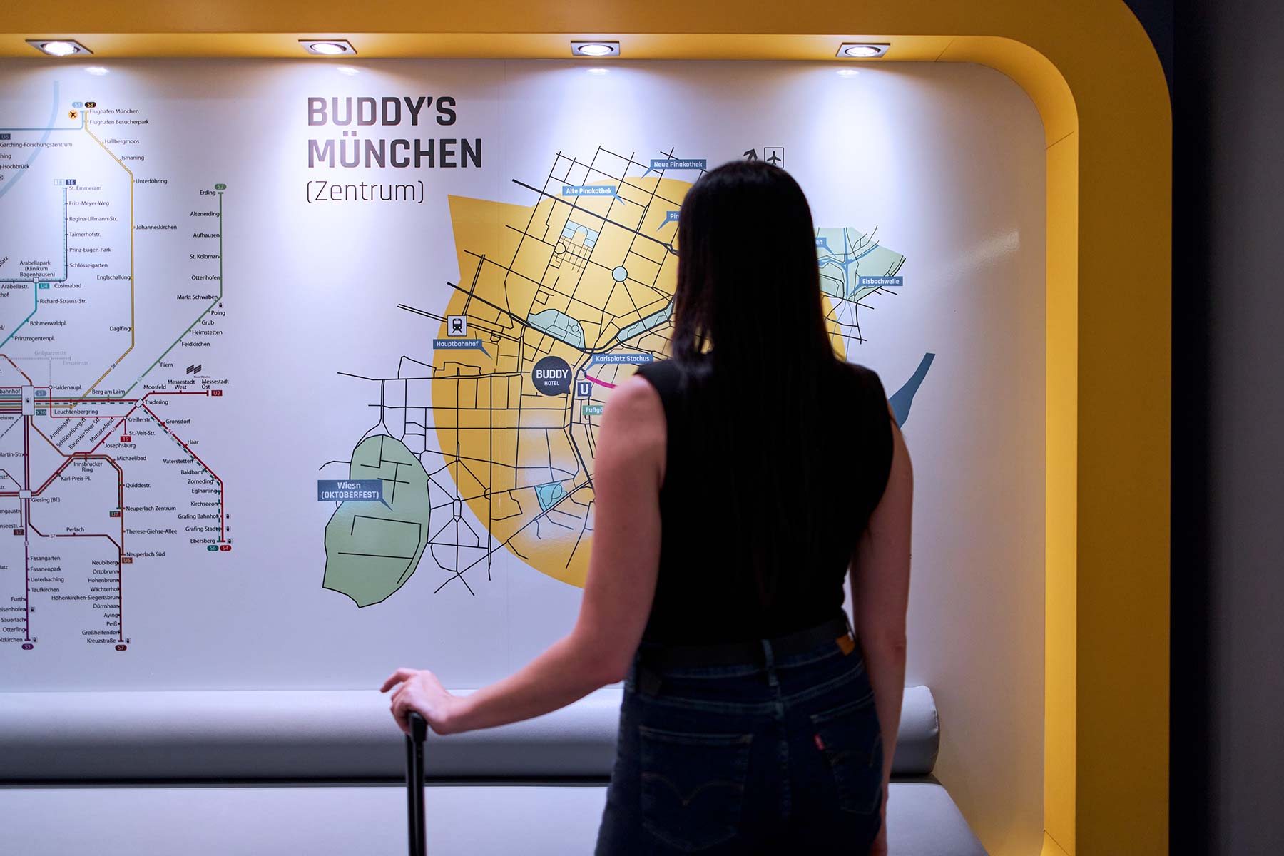 Man zeigt Hotel Buddy auf dem Straßenplan