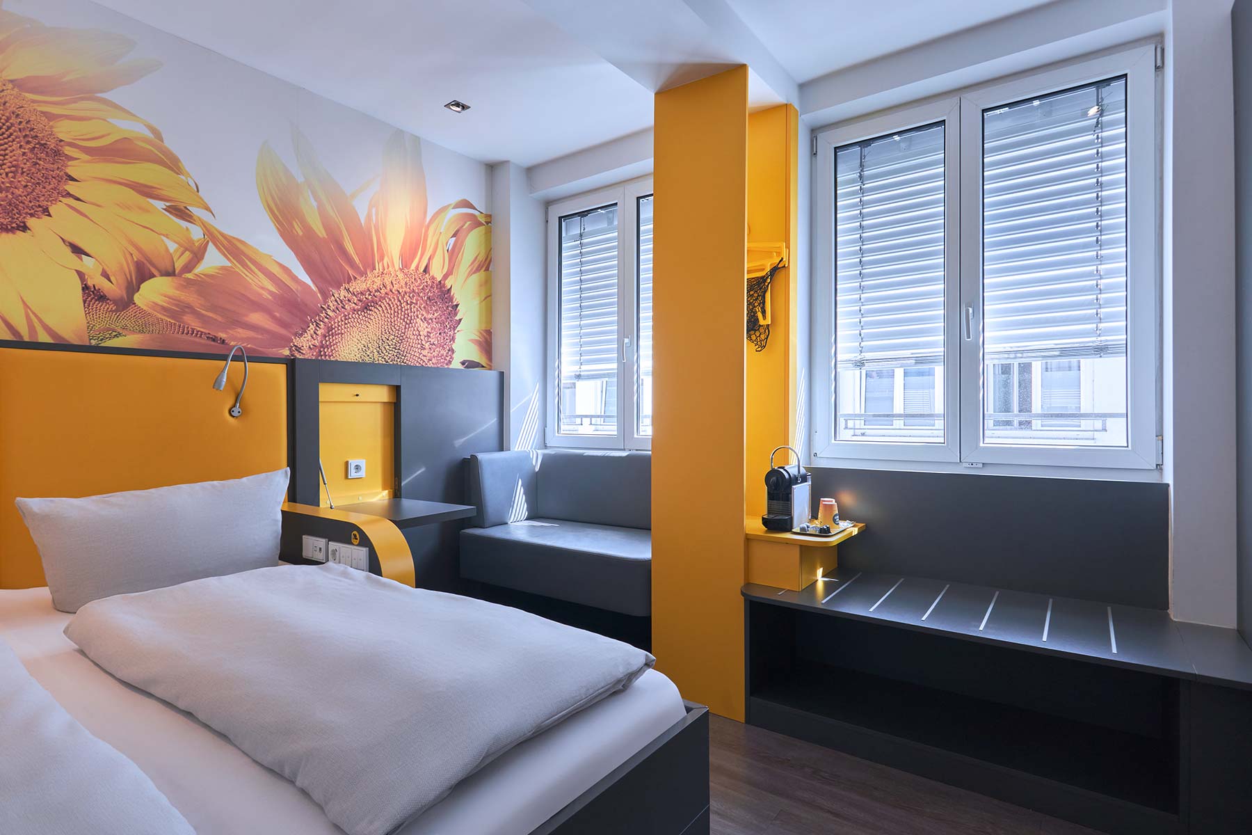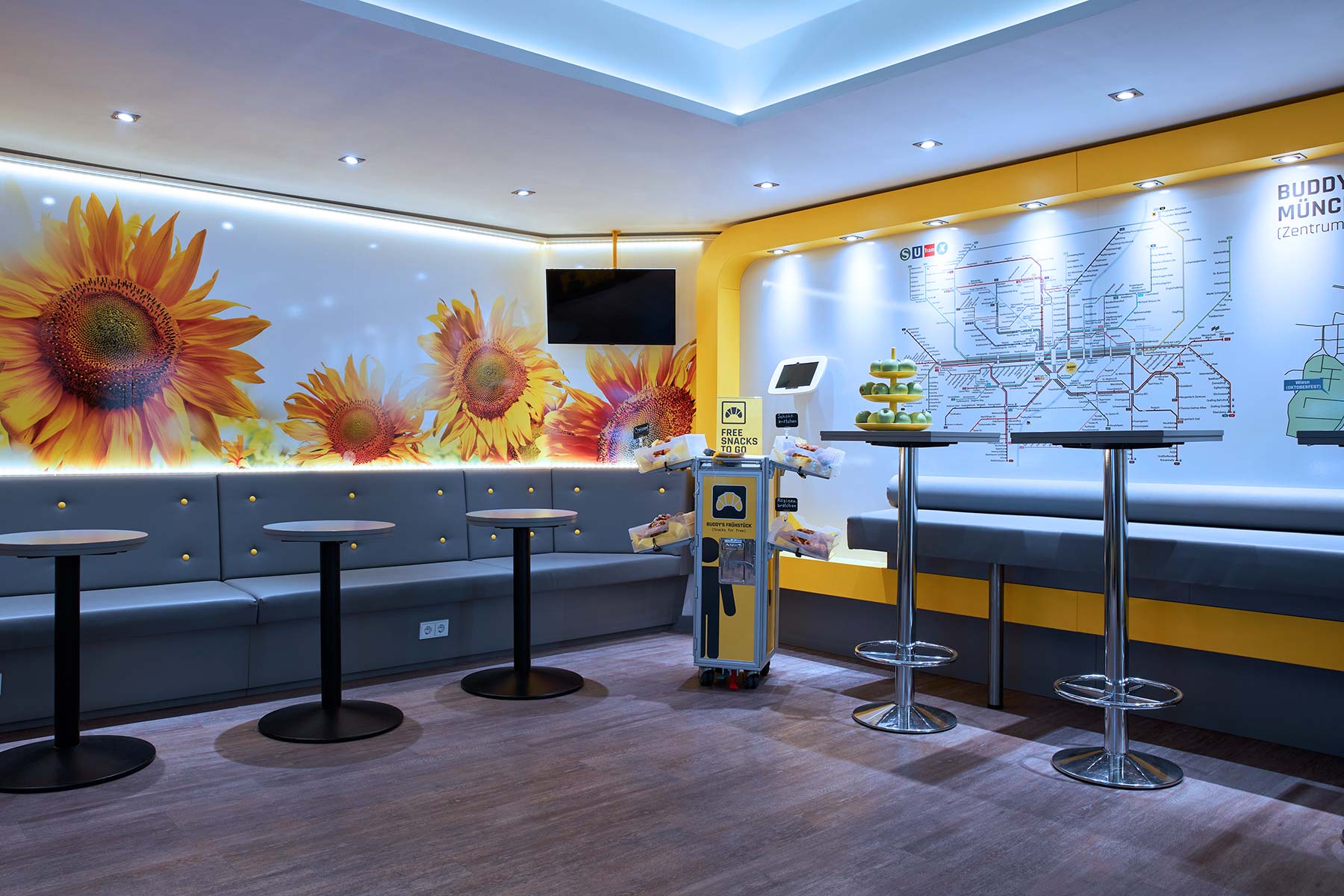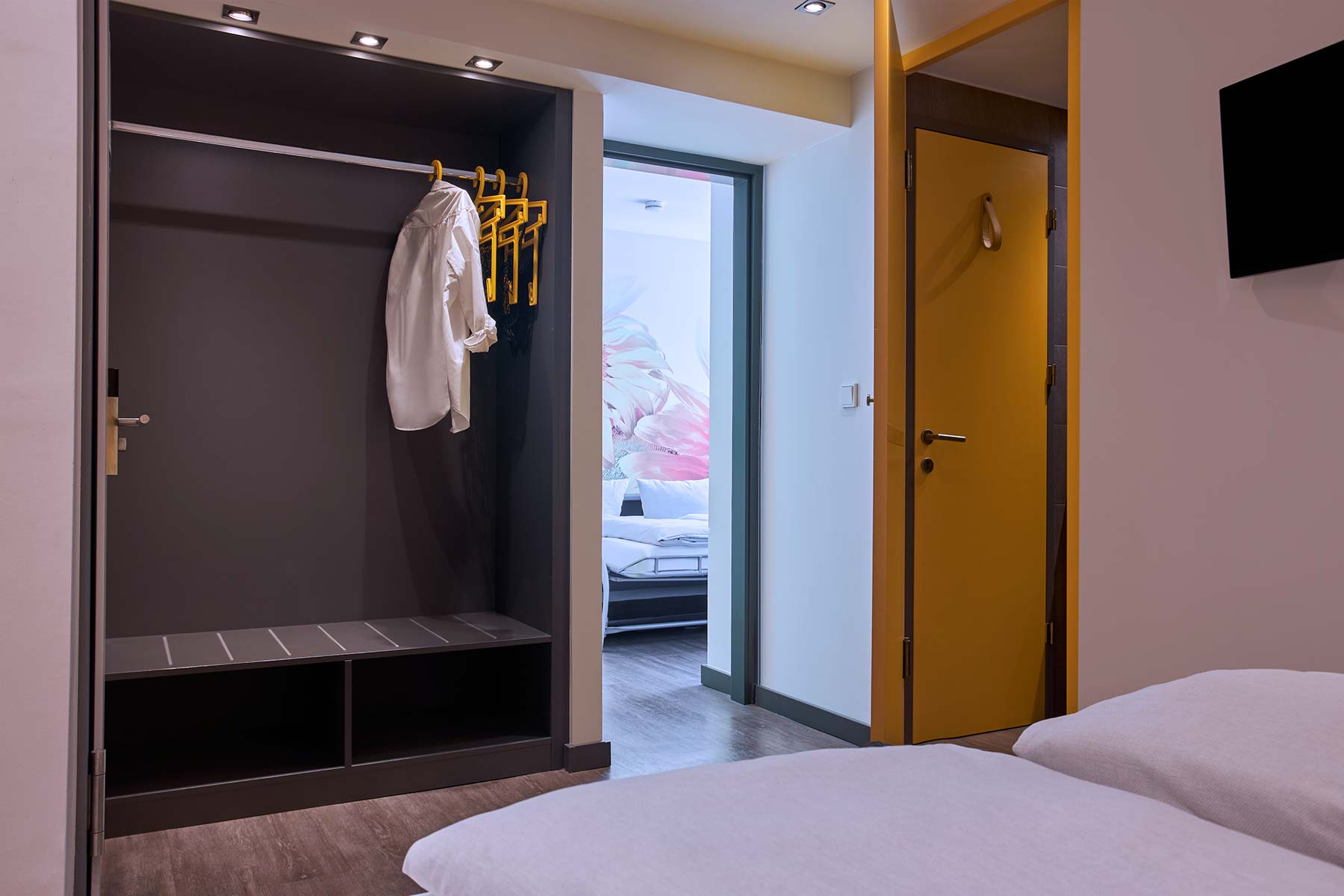 Man zeigt Hotel Buddy auf dem Straßenplan