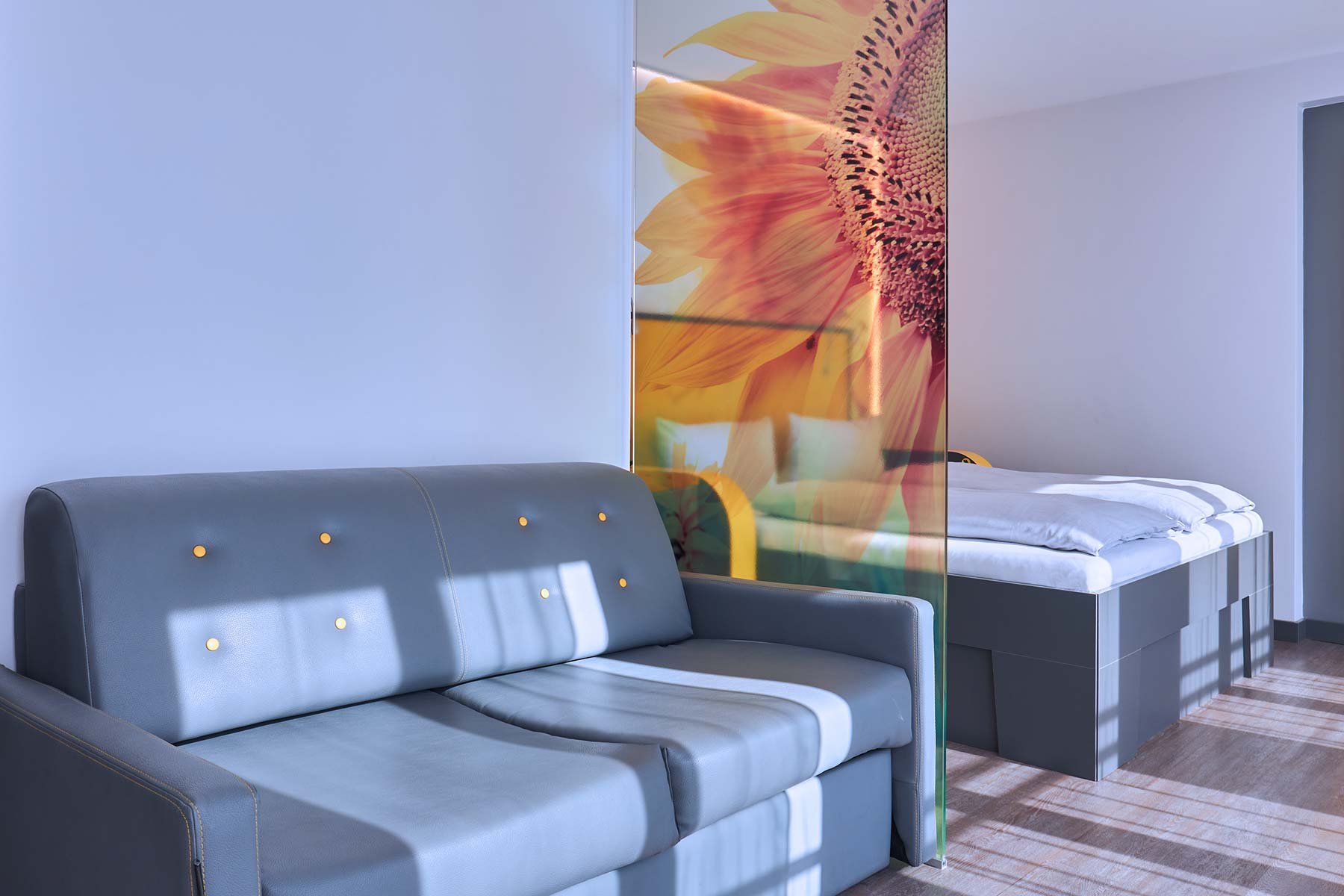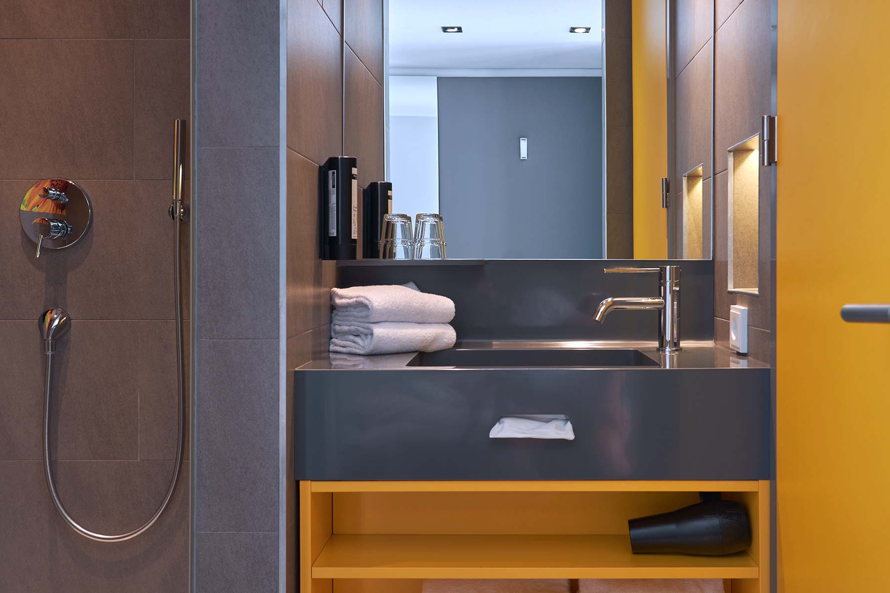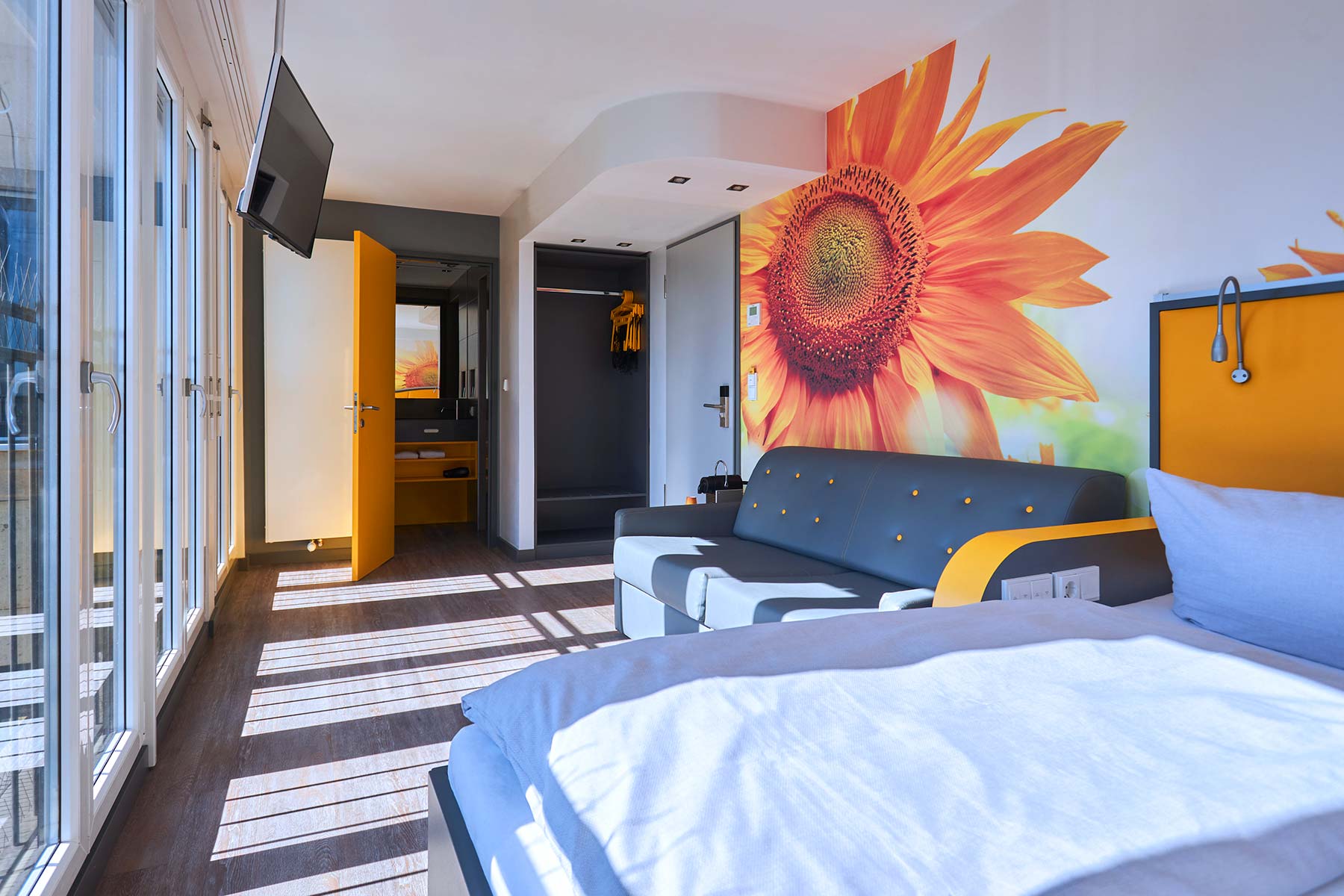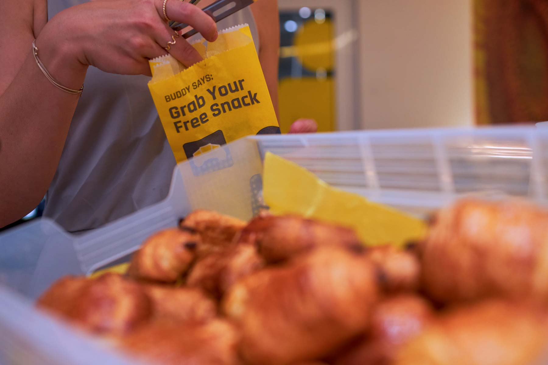 Man zeigt Hotel Buddy auf dem Straßenplan